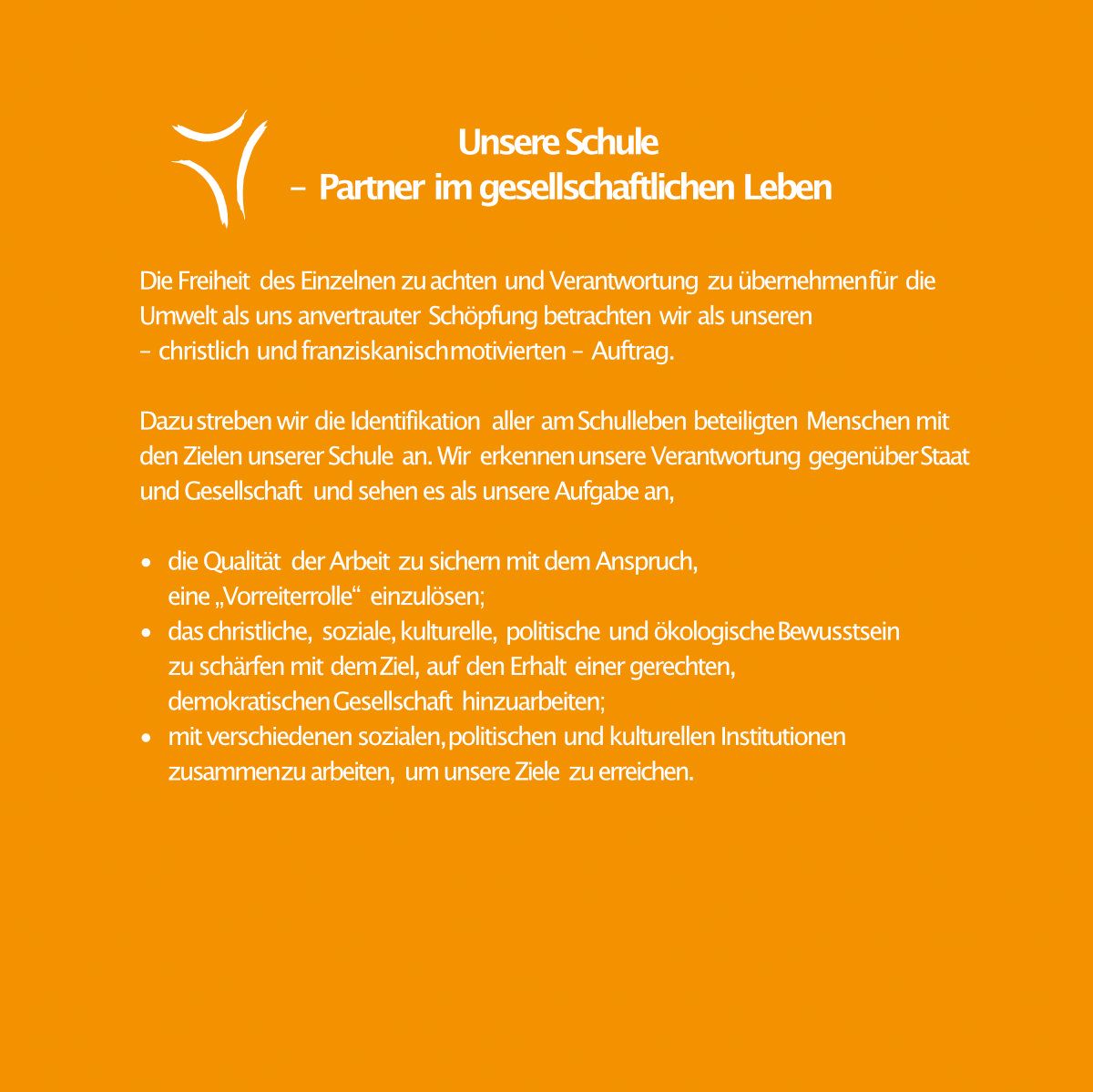 Um dieses Ziel zu erreichen, setzen sich Heilpädagog*innen an unserer Fachschule intensiv auch mit der Entwicklung einer persönlichen heilpädagogischen Haltung auseinander. Dazu gehört neben aktuellen fachwissenschaftlichen Erkenntnissen die Reflexion eigener Werte und Erfahrungen, die immer auch die gesellschaftlichen Erwartungen und christlichen Prägungen einbeziehen.